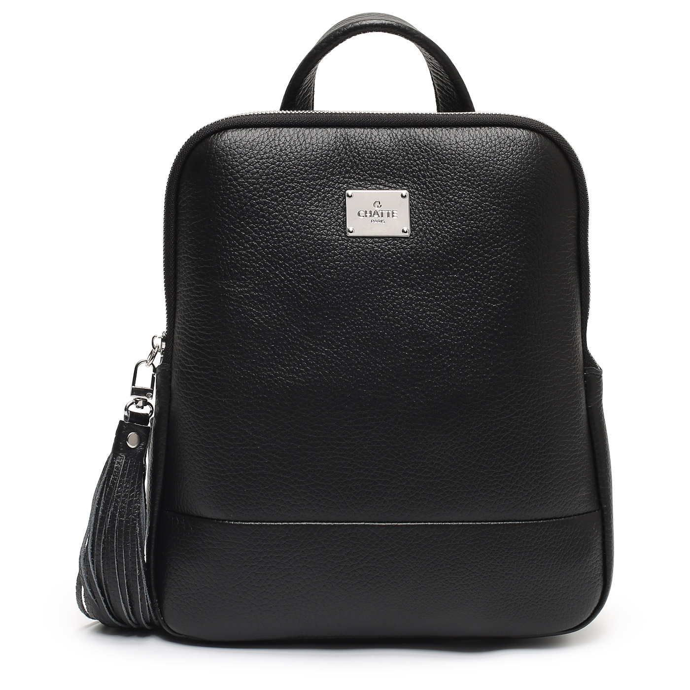 Оригинальный городской рюкзак с лаконичным экстерьером отличается практичностью дизайна и стильным внешним видом. Черная модель из мягкой натуральной кожи снабжена регулируемыми плечевыми лямками и верхней ручкой для переноски. Внутреннее пространство дополняют два открытых кармана и карман на молнии. Рюкзак застегивается на молнию и дополнен съемным брелоком-кисточкой.