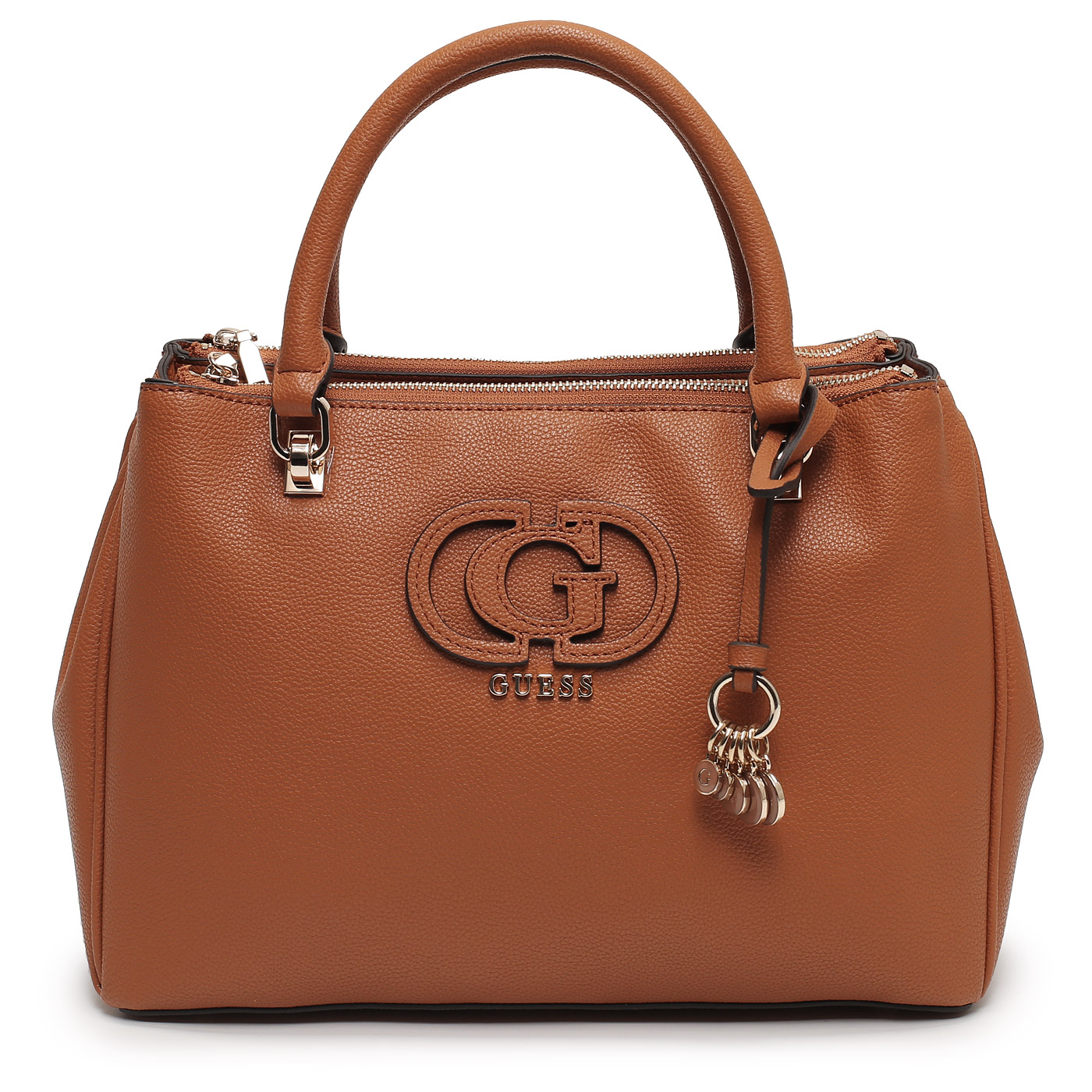 Сумка с короткими ручками Guess Calebra HWBG95 36060_cognac_pc - 2000558776752 коричневый полиуретан 32 x 22 x 11,5 Цена 12900 руб. купить в интернет-магазине PanChemodan.ru в Москве