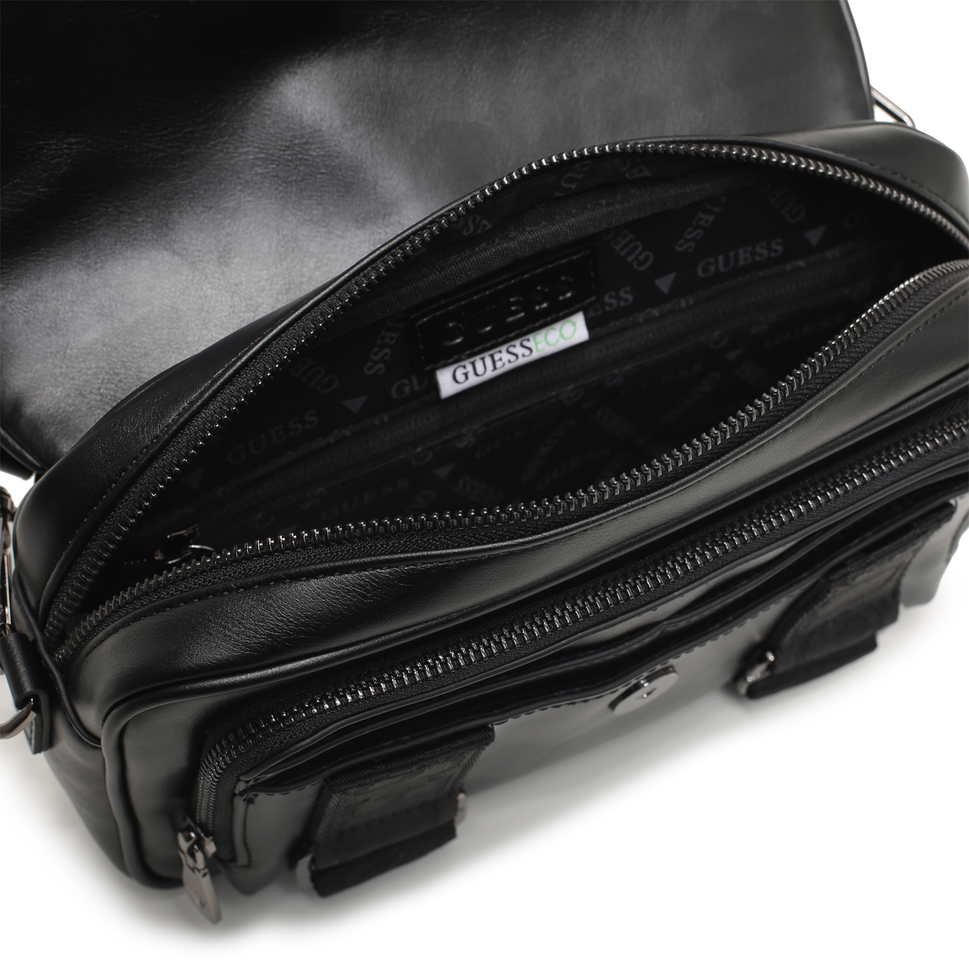 Сумки - мессенджеры из экокожи черные Guess