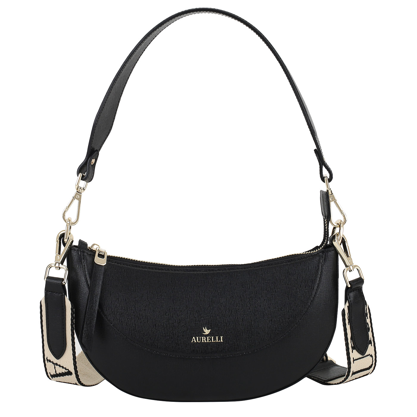 Кожаная сумка Aurelli Bella 23S0155-18G-nero - 2000558620789 черный натуральная кожа 27 x 12 x 5,5 Цена 9090 руб. купить в интернет-магазине PanChemodan.ru в Хабаровске