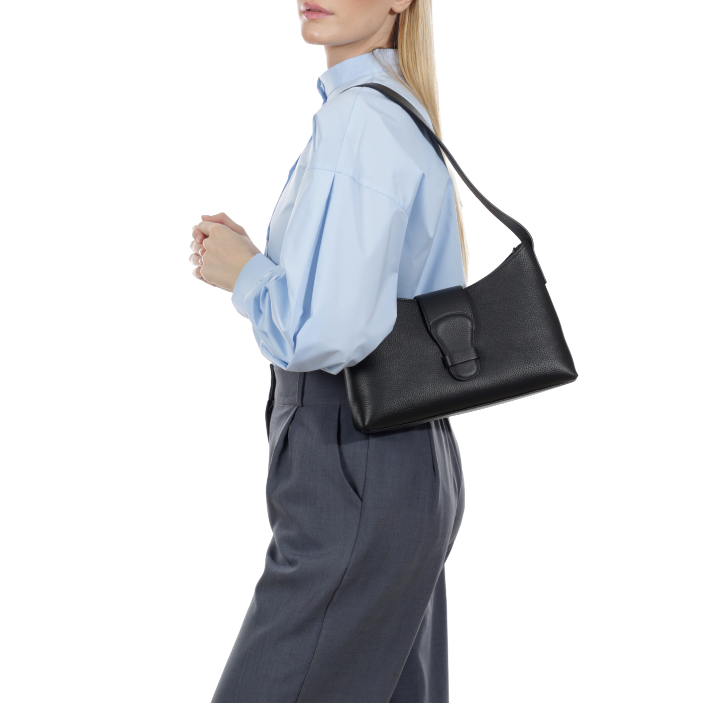 Кожаная сумка Aurelli Soft 23S0166-21G-nero - 2000558698030 черный натуральная кожа 30 x 19,5 x 7,5 Цена 8790 руб. купить в интернет-магазине PanChemodan.ru в Хабаровске